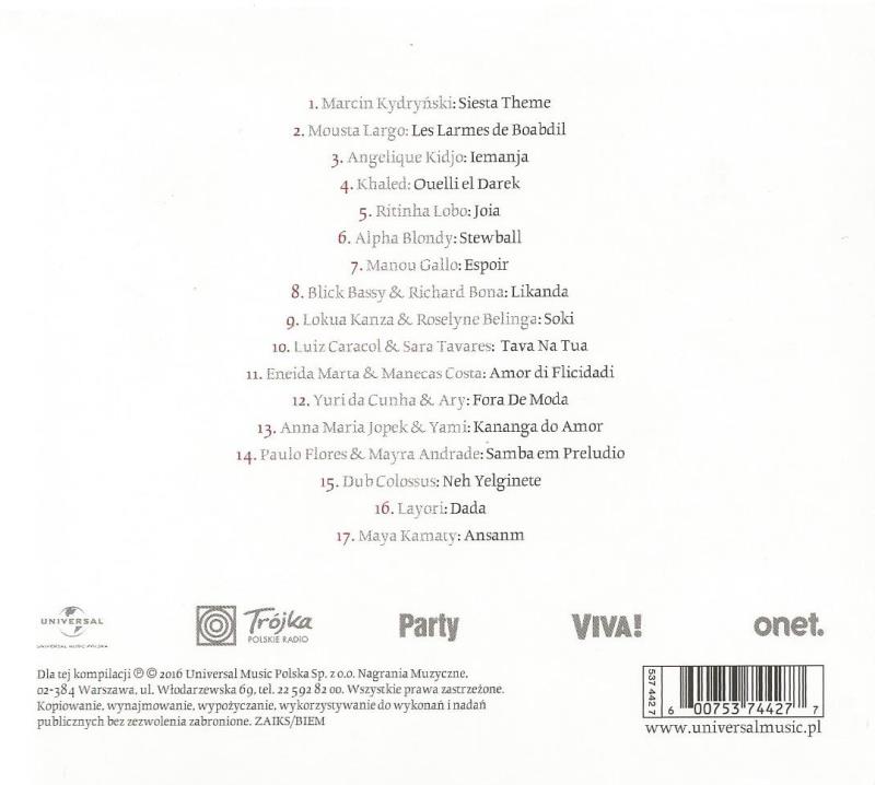 Zawiera: Siesta theme (Marcin Kydryński). Les larmes de Boabdil (Mousta Largo). Iemanja (Angélique Kidjo). Ouelli el Darek (Khaled). Joia (Ritinha Lobo). Stewball (Alpha Blondy). Espoir (Manou Gallo). Likanda (Blick Bassy & Richard Bona). Soki (Lokua Kanza & Roselyne Belinga). Tava na tua (Luiz Caracol & Sara Tavares). Amor di Flicidadi (Eneida Marta & Manecas Costa). Fora de moda (Yuri da Cunha & Ary). Kananga do amor (Anna Maria Jopek & Yami). Samba em prelúdio (Paulo Flores & Mayra Andrade). Neh Yelginete (Dub Colossus). Dada (Layori). Ansanm (Maya Kamaty).