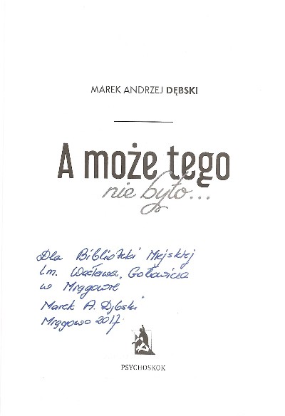 A może tego nie było... / Marek Andrzej Dębski. - Konin : Wydawnictwo Psychoskok, copyright 2017. - 73, [2] strony : ilustracje ; 21 cm.