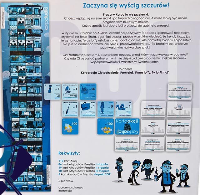 Wyścig szczurów w Korporacji to nie przelewki. Aby wspiąć się na sam szczyt wieżowca KORPO S.A. w Mordorze należy uzyskać jak najwięcej punktów Prestiżu. W tym celu gracze zbierają Karty Atrybutów Stopnia I, II, III i Stopnia TOP. Wygrywa ten, kto zdobędzie najwięcej punktów.