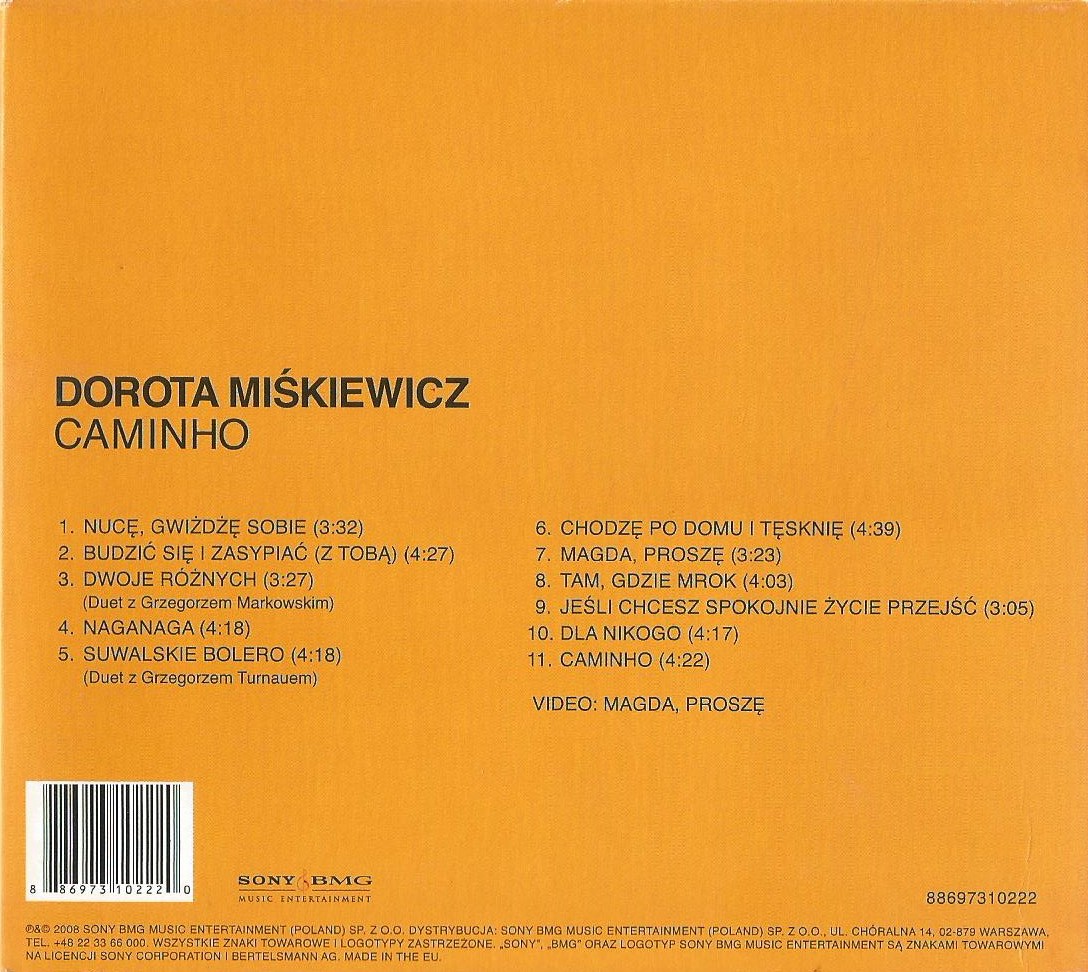 Zawiera: Zawiera: Nucę, gwiżdzę sobie / muz. Dorota Miśkiewicz, Marek Napiórkowski, sł. Dorota Miśkiewicz, Michał Rusinek ; Budzić się i zasypiać (z tobą) / muz. Marek Napiórkowski ; sł. Michał Rusinek ; Dwoje różnych / muz. Dorota Miśkiewicz, Marek Napiórkowski ; sł. Dorota Miśkiewicz, Michał Rusinek ; Naganaga / muz. Dorota Miśkiewicz, Marek Napiórkowski ; sł. Dorota Miśkiewicz ; Suwalskie bolero / muz. Marek Napiórkowski ; sł. Grzegorz Turnau ; Chodzę po domu i tęsknię ; Magda, proszę : ded. Magdzie Czapińskiej / muz., sł. Dorota Miśkiewicz ; Tam, gdzie mrok / muz. Dorota Miśkiewicz, Marek Napiórkowski ; sł. Dorota Miśkiewicz ; Jeśli chcesz spokojnie życie przejść / muz. Karolina Kozak, Marek Napiórkowski ; sł. Karolina Kozak ; Dla nikogo / muz. Dorota Miśkiewicz, Marek Napiórkowski ; sł. Michał Rusinek ; Caminho (po portugalsku Droga) / muz. Marek Napiórkowski ; sł. Grzegorz Turnau. Video : Magda, proszę / reż. Justyna Jeger-Nagłowska, Marta Pruska.