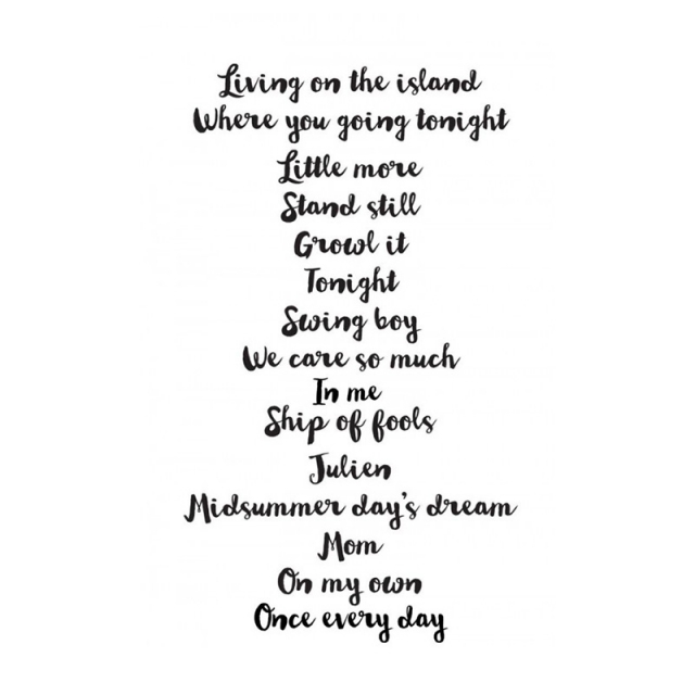 Zawiera: Zawiera: Living on the island ; Where you going tonight ; Little more ; Stand still ; Growl it ; Tonight ; Swing boy ; We care so much ; In me ; Ship of fools ; Julien ; Midsummer day's dream ; Mom ; On my own ; Once every day.