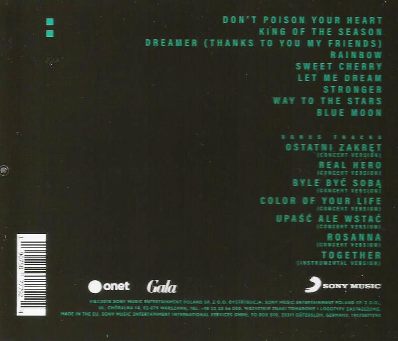 Zawiera: Don't Poison Your Heart ; King Of The Season ; Dreamer (Thanks To You My Friends) (Special ... ; Rainbow ; Sweet Cherry ; Let Me Dream ; Stronger ; Way To The Stars ; Blue Moon ; Ostatni zakręt Concert Version) ; Real Hero (Concert Version) ; Byle być sobą (Concert Version) ; Color Of Your Life (Concert Version) ; Upaść ale wstać (Concert Version) ; Rosanna (Concert Version) ; Together (Instrumental Version).