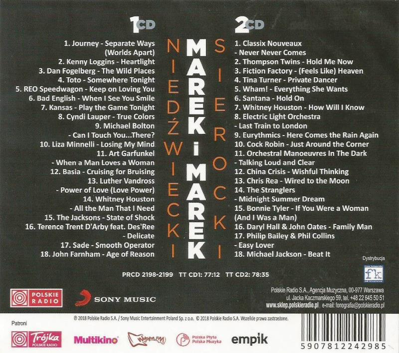 Niedźwiecki Marek (1954- ) Wybór Sierocki Marek (1959- ) Wybór Journey Separate Ways (Worlds Apart) Wykonanie Loggins Kenny Heartlight Wykonanie Fogelberg Dan The Wild Places Wykonanie Toto Somewhere Tonight Wykonanie REO Speedwagon Keep on Loving You Wykonanie Bad English When I See You Smile Wykonanie Kansas Play the Game Tonight Wykonanie Lauper Cyndi True Colors Wykonanie Bolton Michael (1953- ) Can I Touch You...There? Wykonanie Minnelli Liza (1946- ) Losing My Mind Wykonanie Garfunkel Art (1941- ) When a Man Loves a Woman Wykonanie Basia (1954- ) Cruising for Bruising Wykonanie Vandross Luther (1985- ) Power of Love (Love Power) Wykonanie Houston Whitney (1963-2012) All the Man That I Need Wykonanie The Jacksons State of Shock Wykonanie Terence Trent D'Arby feat. Des'Ree Delicate Wykonanie Sade (1959- ) Smooth Operator Wykonanie Farnham John Age of Reason Wykonanie Classix Nouveaux Never Never Comes Wykonanie Twins Thompson Hold Me Now Wykonanie Fiction Factory. (Feels Like) Heaven Wykonanie Turner Tina (1939-2023) Private Dancer Wykonanie Wham!. Everything She Wants Wykonanie Santana Carlos (1947- ) Hold On Wykonanie Houston Whitney (1963-2012) How Will I Know Wykonanie Electric Light Orchestra. Last Train to London Wykonanie Eurythmics Here Comes the Rain Again Wykonanie Robin Cock Just Around the Corner Wykonanie Orchestral Manoeuvres In The Dark Talking Loud and Clear Wykonanie Crisis China Wishful Thinking Wykonanie Rea Chris (1951- ) Wired to the Moon Wykonanie The Stranglers Midnight Summer Dream Wykonanie Tyler Bonnie (1951- ) If You Were a Woman (And I Was a Man) Wykonanie Hall Daryl & Oates John Family Man Wykonanie Bailey Philip & Collins Phil (1951- ) Easy Lover Wykonanie Jackson Michael (1958-2009) Beat It Wykonanie