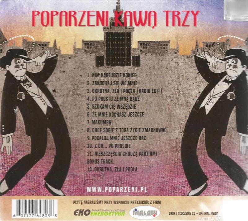 Poparzeni Kawą Trzy (Roman Osica, śpiew, saksofon altowy ; Krzysztof Zasada, śpiew, gitara ; Mariusz Gierszewski, gitara basowa ; Wojciech Jagielski, perkusja ; Marian Hilla, saksofontenorowy, barytonowy, śpiew ; Piotr Sławiński, trąbka, flugelhorn, akordeon ; Jacek Kret, puzon, spiew ; Rafał Bryndal, teksty, taniec).