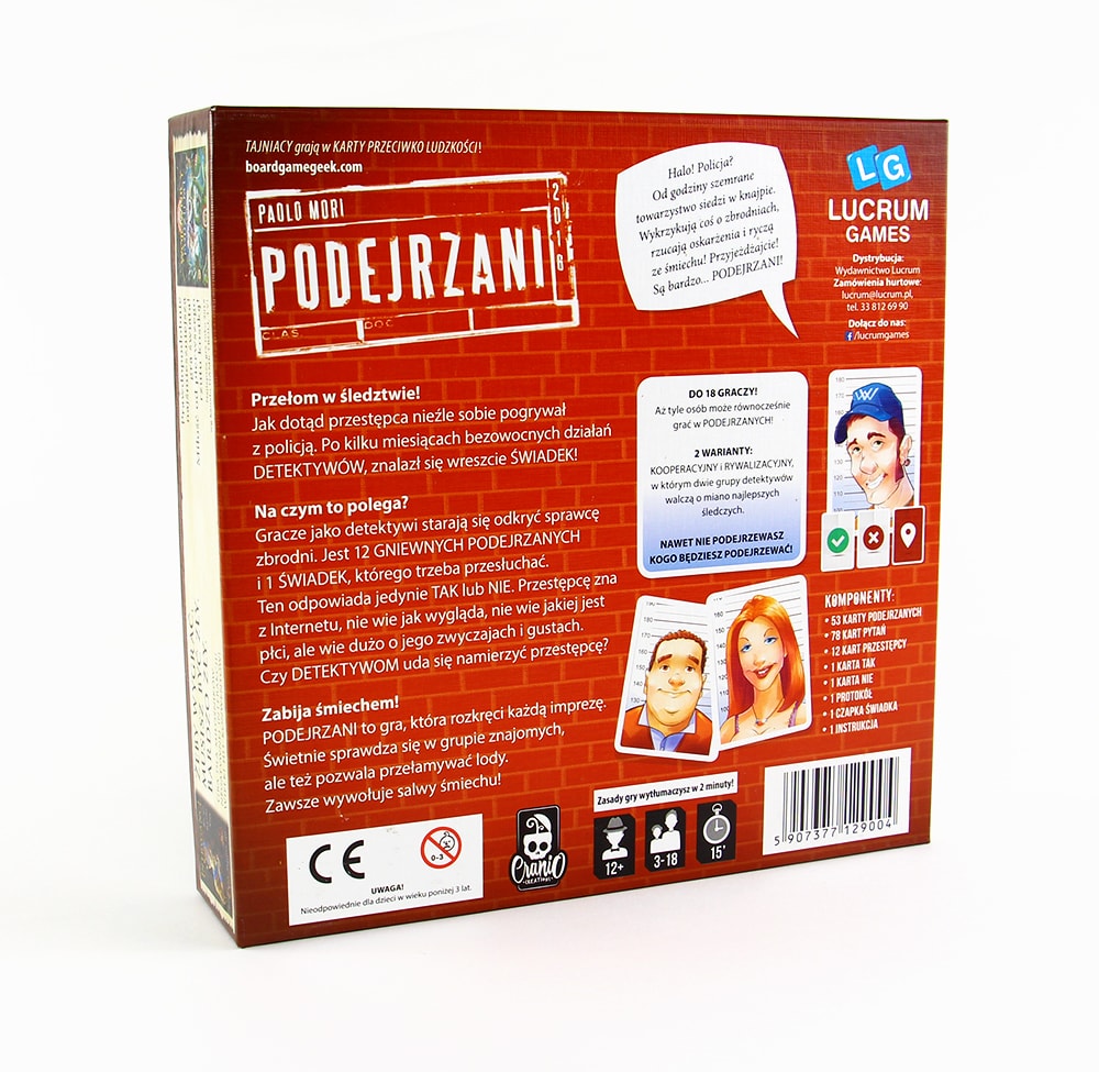 Podejrzani / Paolo Mori. - Bielsko-Biała : Wydawnictwo Lucrum, [brak daty wydania]. - 1 pudełko ; 22,5x22,5x6 cm + instrukcja.