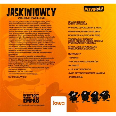 Jaskiniowcy : walka o ewolucję / opracowanie graficzne i pomysł Empro. - Nowa Iwiczna : Jawa, copyright 2018. - 1 pudełko : tektura, karton, plastik, kolor ; 25x25x6 cm + instrukcja.