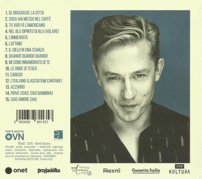 Dodatek drukowany w opakowaniu zawiera teksty piosenek w języku włoskim.