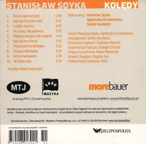 Zawiera: Zawiera: Bracie patrzcie jeno (4'59) ; Gdy się Chrystus rodzi (3'47) ; Lulajże Jezuniu (4'07) ; Do szopy, hej pasterze (2'25) ; Pójdźmy wszyscy do stajenki (4'44) ; Gdy śliczna Panna (2'55) ; Przybieżeli do Betlejem (3'23) ; Dzisiaj w Betlejem (3'27) ; Jezus malusieńki (4'19) ; W żłobie leży (2'21).