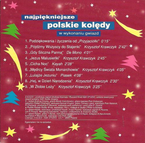 Zawiera: Zawiera: Podziękowania i życzenia od "Przyjaciółki" ; Pójdźmy wszyscy do stajenki (Krzysztof Krawczyk) ; Gdy śliczna Panna (De Mono) ; Jezus malusieńki (Krzysztof Krawczyk) ; Cicha noc (Kayah) ; Mędrcy świata monarchowie (Krzysztof Krawczyk) ; Lulajże Jezuniu (Piasek) ; Hej, w Dzień Narodzenia (Krzysztof Krawczyk) ; W żłobie leży (Krzysztof Krawczyk).