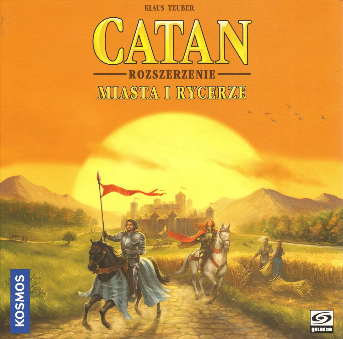Catan : miasta i rycerze : rozszerzenie / Klaus Teuber ; ilustracje Michael Menzel. - Kraków : Galakta, 2015. - 1 pudełko : karton, tektura, plastik, kolor ; w pudełku 30x30x8 cm + instrukcja (12 stron : ilustracje ; 29 cm).